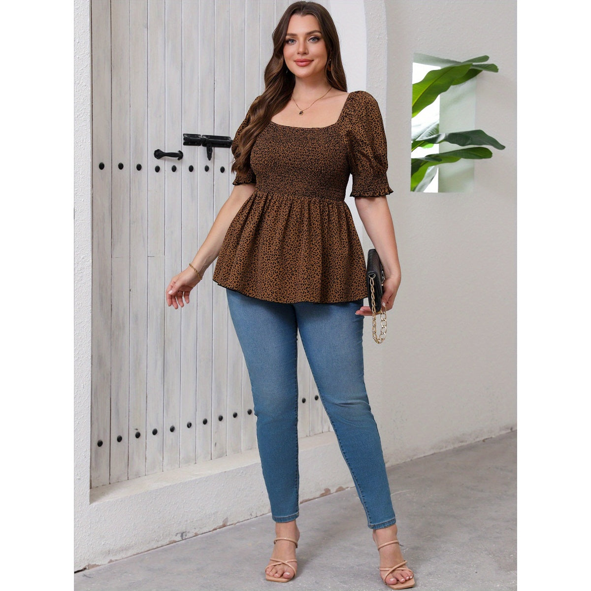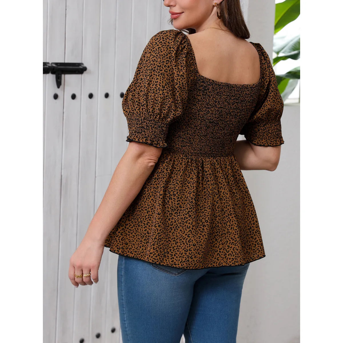 Schößchen-Top mit quadratischem Ausschnitt und Puffärmeln